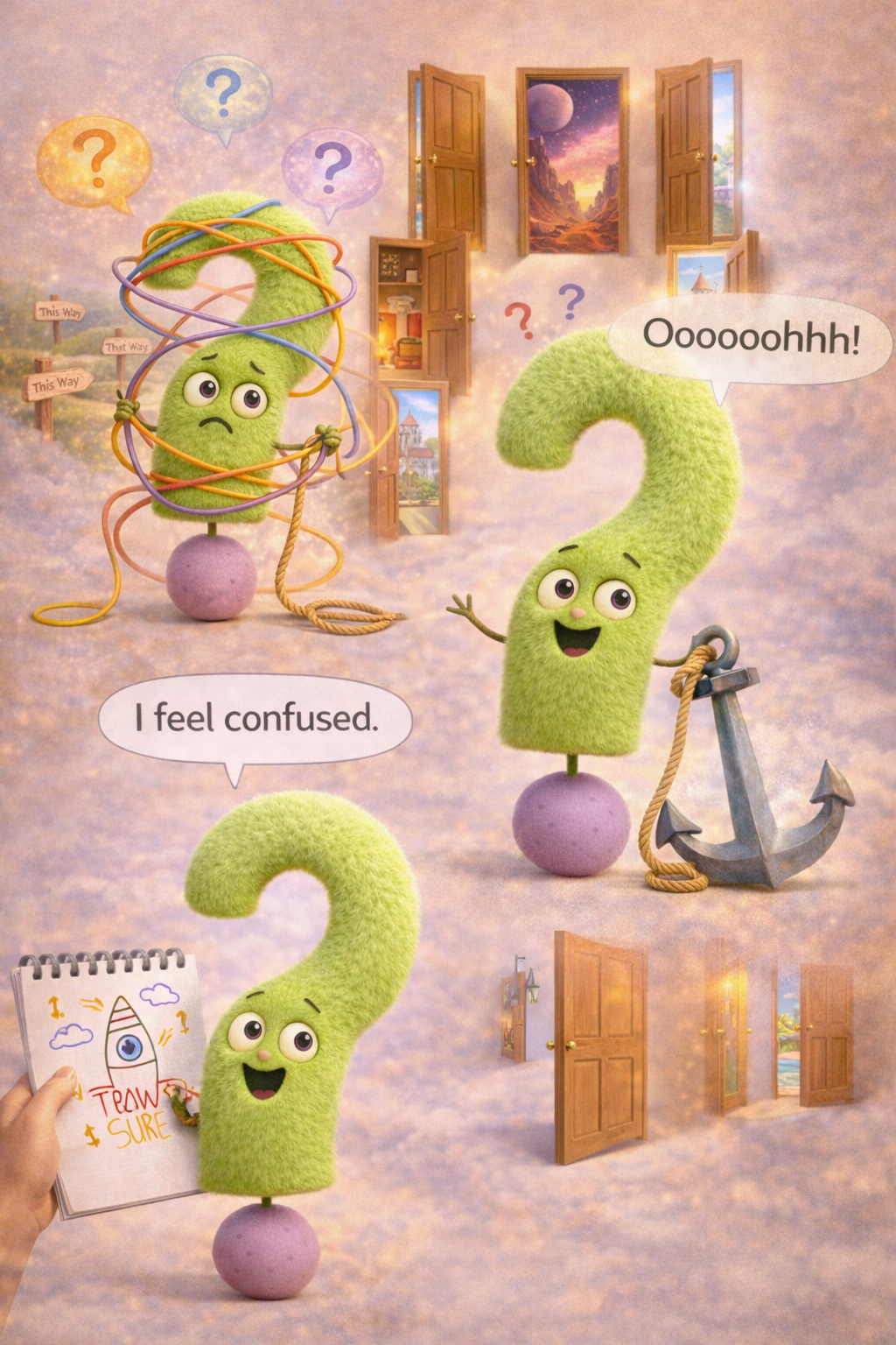 Say: “I feel confused.” Naming it helps your brain start to organise the fog.
