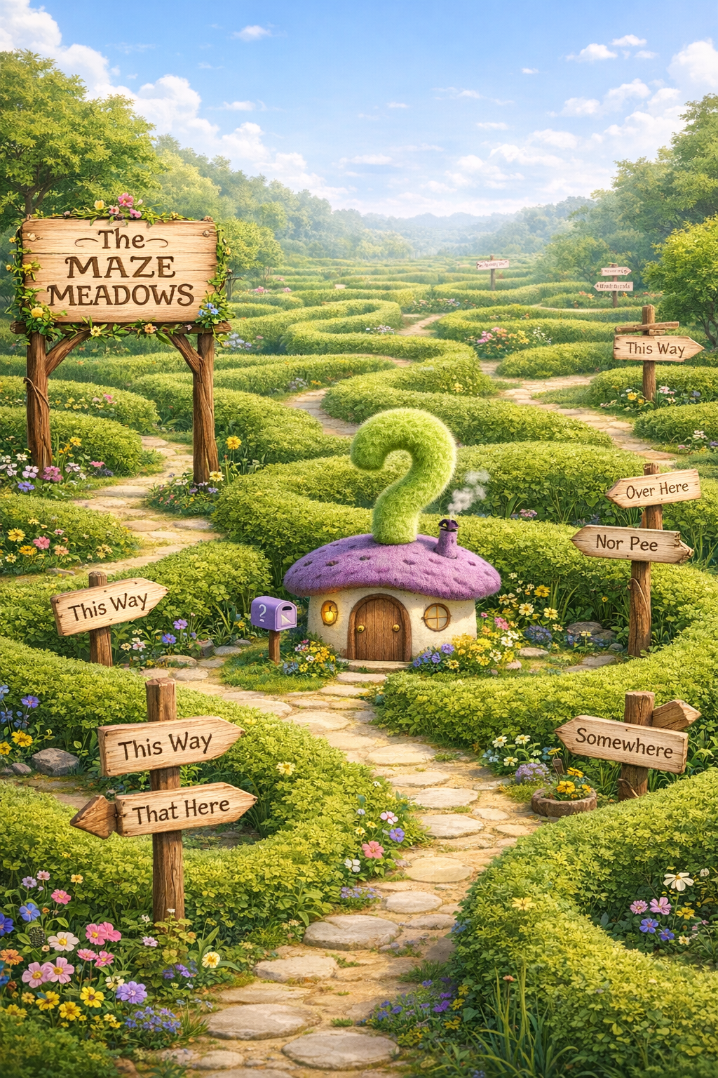 The Maze Meadows: A place where paths loop and signs point in all directions.